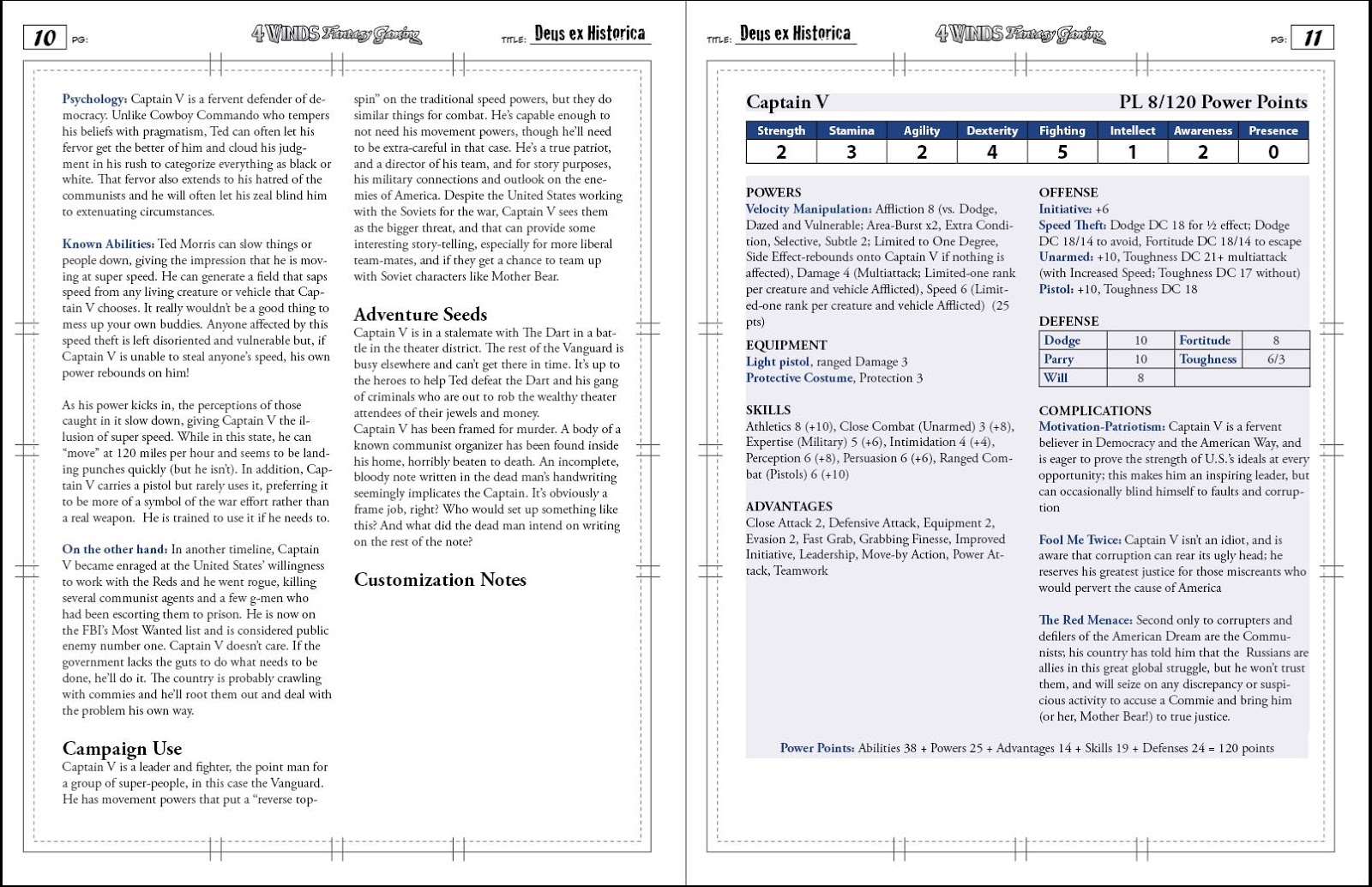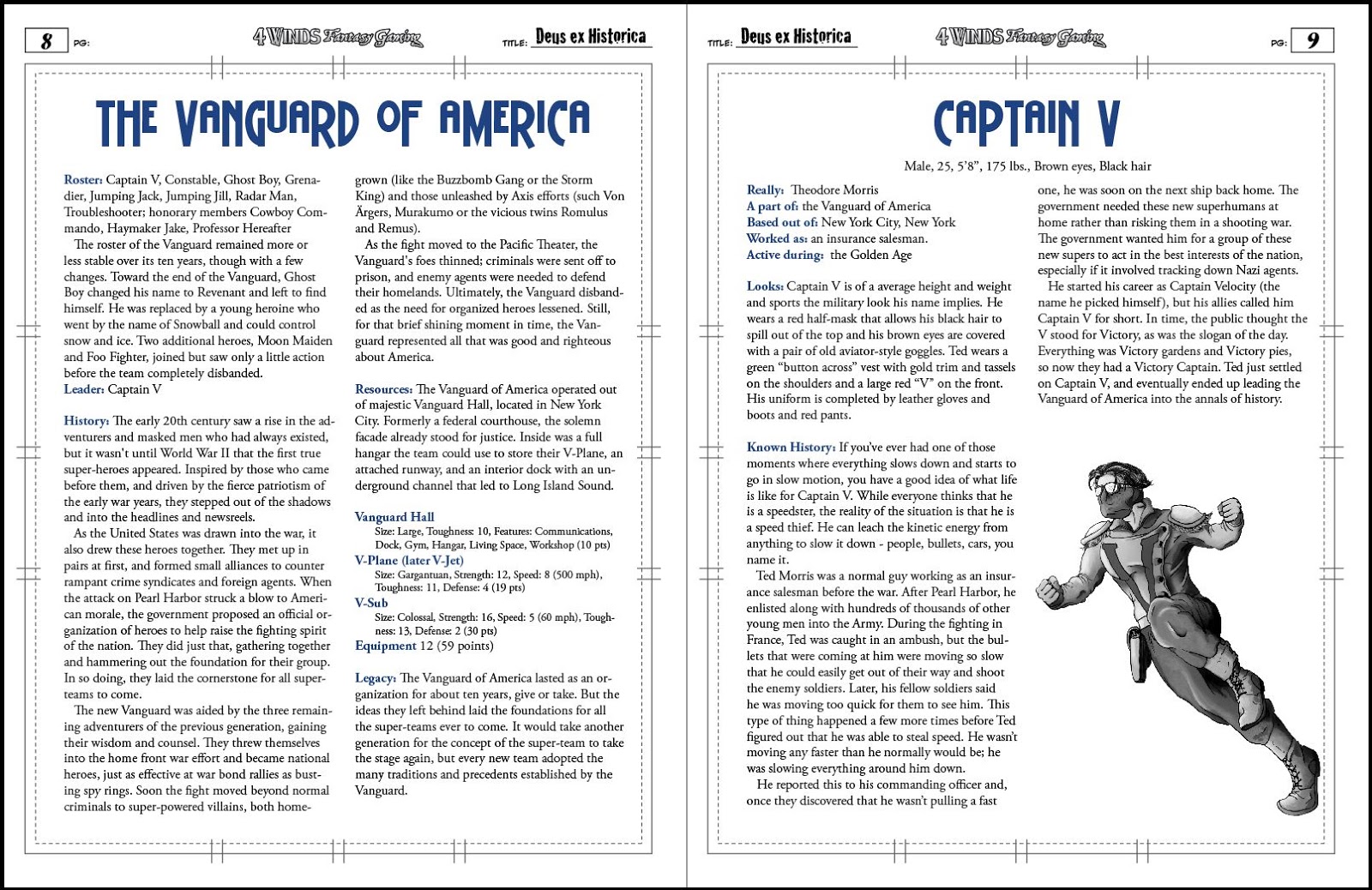 Under this model, most heroes or villains get three pages (two for background and one for statistics). On some of the hero or villain teams each member may only get two pages instead.